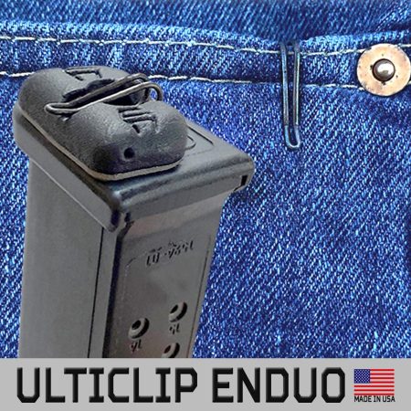The Ulticlip Universal Enduo allows you to carry a spare magazine without carrying additional equipment. The stainless steel clip automatically retracts when the magazine is removed from your pocket. Installation is quick and simple. The high bond tape adheres to the baseplate of most pistol magazines and is ready for use after 24 hours. See our videos for how to use and install the Enduo.